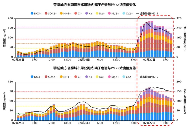 圖5 2021年元宵節(jié)至正月十六菏澤、聊城離子組分濃度圖