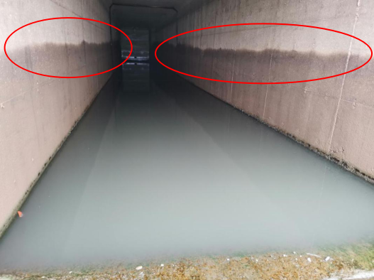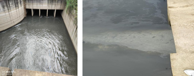 圖1 蓑衣莢閘口內(nèi)污水雨天溢流痕跡明顯
