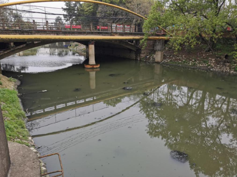 圖2 青山閘附近水體黑臭,取樣監(jiān)測顯示氨氮濃度10.8毫克/升,超過Ⅲ類水質(zhì)標準9.8倍