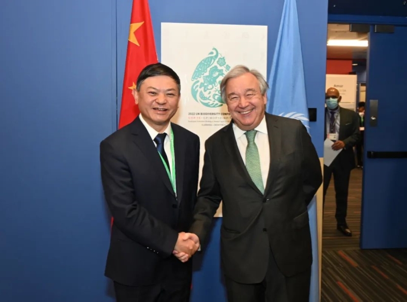 當(dāng)?shù)貢r(shí)間12月6日,《生物多樣性公約》第十五次締約方大會(huì)(COP15)主席、生態(tài)環(huán)境部部長(zhǎng)黃潤(rùn)秋在加拿大蒙特利爾會(huì)見聯(lián)合國(guó)秘書長(zhǎng)古特雷斯,圍繞“2020年后全球生物多樣性框架”(以下簡(jiǎn)稱“框架”)磋商進(jìn)程、推動(dòng)COP15第二階段會(huì)議取得成功等深入交流。