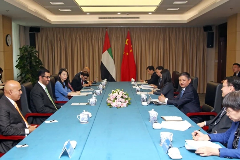 4月17日,生態(tài)環(huán)境部部長黃潤秋在京會見《聯(lián)合國氣候變化框架公約》第二十八次締約方大會(COP28)候任主席、阿聯(lián)酋氣候變化事務(wù)特使蘇爾坦。雙方圍繞應(yīng)對氣候變化、生物多樣性保護以及對COP28的展望等議題進行交流。