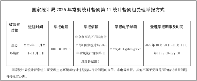 根據(jù)黨中央和國務院授權,國家統(tǒng)計局2025年常規(guī)統(tǒng)計督察第11統(tǒng)計督察組近日進駐生態(tài)環(huán)境部開展統(tǒng)計督察,并于10月20日與生態(tài)環(huán)境部進行對接溝通。督察組組長、國家統(tǒng)計局黨組成員、副局長毛盛勇通報統(tǒng)計督察事宜,提出工作要求。生態(tài)環(huán)境部黨組成員、副部長李高參加對接溝通并講話。