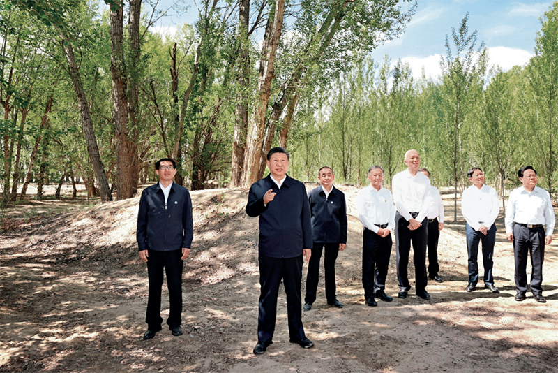 2023年6月5日至6日,中共中央總書記、國家主席、中央軍委主席習近平在內(nèi)蒙古巴彥淖爾考察,并主持召開加強荒漠化綜合防治和推進“三北”等重點生態(tài)工程建設座談會。這是6日上午,習近平在臨河區(qū)國營新華林場考察。新華社記者 謝環(huán)馳/攝