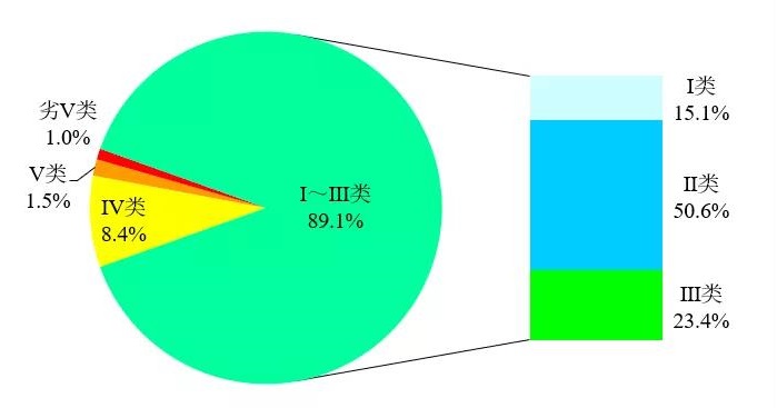 圖1 12月全國地表水水質(zhì)類別比例