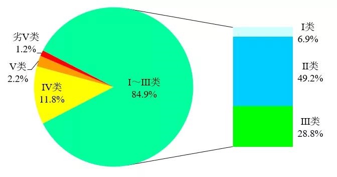 圖2 1-12月全國地表水水質(zhì)類別比例