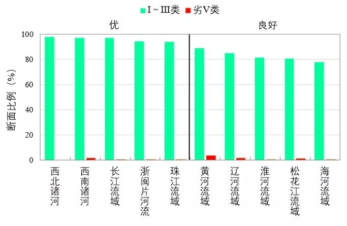 1-12月,長江、黃河、珠江、松花江、淮河、海河、遼河等七大流域及西北諸河、西南諸河和浙閩片河流水質(zhì)優(yōu)良(Ⅰ~Ⅲ類)斷面比例為87.0%,同比上升2.1個百分點;劣Ⅴ類斷面比例為0.9%,同比下降0.8個百分點。主要污染指標(biāo)為化學(xué)需氧量、高錳酸鹽指數(shù)和總磷。其中,長江流域、西北和西南諸河、浙閩片河流和珠江流域水質(zhì)為優(yōu);黃河、遼河和淮河流域水質(zhì)良好;松花江和海河流域為輕度污染。