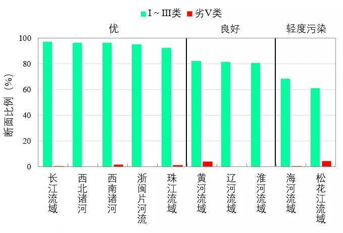 圖4 1-12月七大流域和西南、西北諸河及浙閩片河流水質(zhì)類別比例