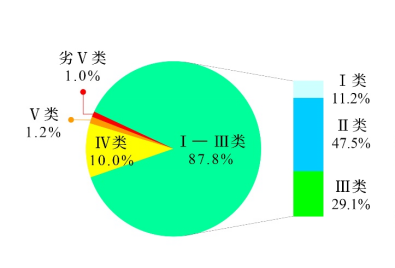 圖1 1—6月全國地表水水質(zhì)類別比例