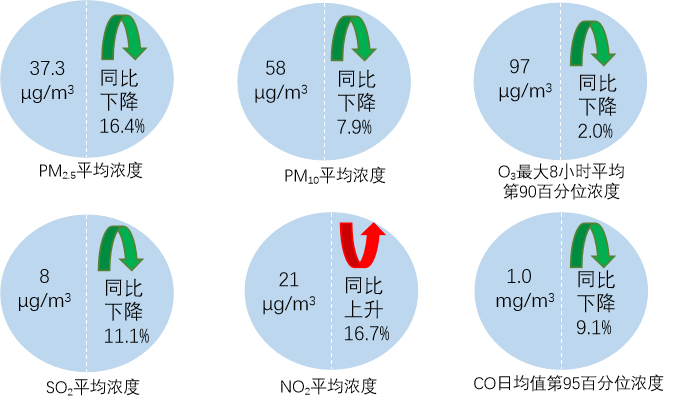 2月,全國339個(gè)地級及以上城市PM2.5平均濃度為37.3微克/立方米,同比下降16.4%;PM10平均濃度為58微克/立方米,同比下降7.9%;O3平均濃度為97微克/立方米,同比下降2.0%;SO2平均濃度為8微克/立方米,同比下降11.1%;NO2平均濃度為21微克/立方米,同比上升16.7%;CO平均濃度為1.0毫克/立方米,同比下降9.1%。