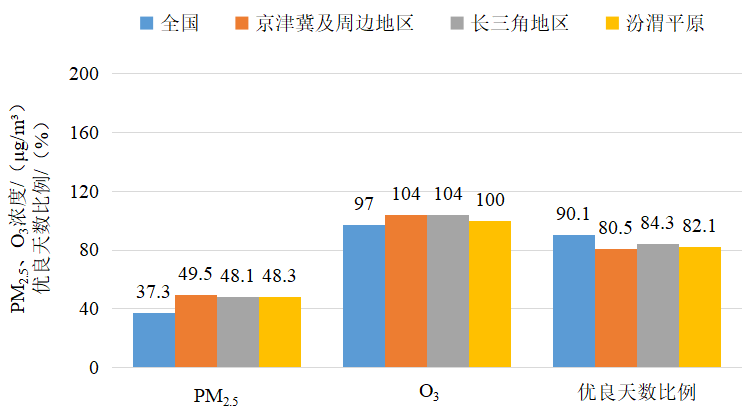 圖3 2025年2月全國及重點(diǎn)區(qū)域空氣質(zhì)量比較