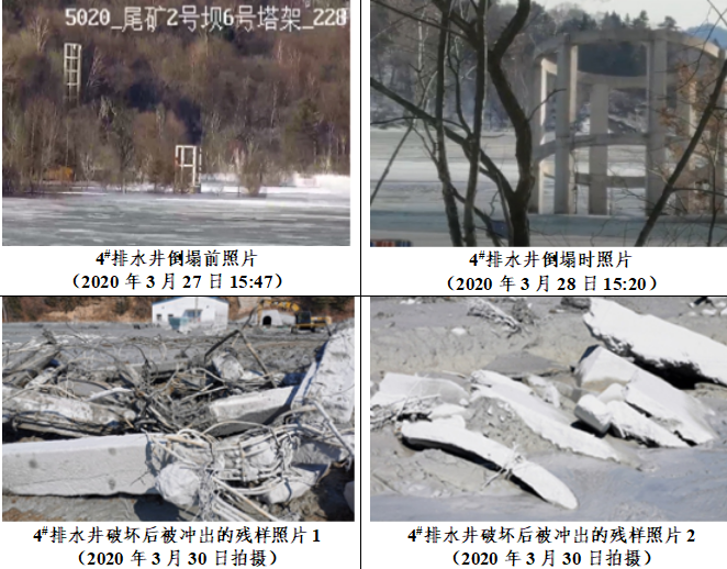 經(jīng)現(xiàn)場(chǎng)調(diào)查取證和檢測(cè)分析論證,鹿鳴礦業(yè)尾礦庫(kù)4#排水井拱板和井架工程質(zhì)量達(dá)不到設(shè)計(jì)和施工規(guī)范要求,拱板發(fā)生結(jié)構(gòu)破壞導(dǎo)致尾礦泄漏,井架在不平衡尾礦、水和冰塊的壓力作用下倒塌,進(jìn)而導(dǎo)致尾礦經(jīng)排水隧洞大量泄漏,是造成事件發(fā)生的直接原因。
