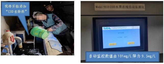 2023年3月29日下午,執(zhí)法人員對該單位進行現(xiàn)場突擊檢查?,F(xiàn)場檢查發(fā)現(xiàn),該單位總排口COD自動監(jiān)控數(shù)據(jù)上升至100mg/L左右,與平時的數(shù)據(jù)反差極大。執(zhí)法人員通過全面排查該單位的自動監(jiān)控設(shè)施,未發(fā)現(xiàn)設(shè)施有異常情況,在排除采樣環(huán)節(jié)稀釋樣品、分析環(huán)節(jié)修改參數(shù)等常見的造假可能后,執(zhí)法人員現(xiàn)場對該單位使用的藥劑進行逐一排查,發(fā)現(xiàn)部分藥劑未標明成分,十分可疑。經(jīng)進一步調(diào)查,該單位操作人員最終承認,平時為防止COD自動監(jiān)控數(shù)據(jù)超標,在總排口處添加了“COD去除劑”,執(zhí)法人員現(xiàn)場檢查時未敢添加,導致自動監(jiān)控數(shù)據(jù)反彈至真實水平。該操作人員隨后現(xiàn)場演示了添加藥劑的過程,在此期間COD自動監(jiān)控數(shù)值由101mg/L降為9.3mg/L。經(jīng)專業(yè)機構(gòu)鑒定,該藥劑為濃度超過99%的氯酸鈉,生態(tài)環(huán)境部門將此案件信息通報公安機關(guān)后,公安機關(guān)立即對“COD去除劑”銷售鏈上下游開展追查,已鎖定上游賣家2家。