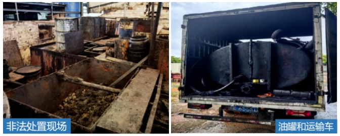 2023年初,佛山市生態(tài)環(huán)境局日常巡查發(fā)現(xiàn)違法線索后核查發(fā)現(xiàn),三水區(qū)南山鎮(zhèn)下屋村有團伙非法收集、處置廢礦物油。佛山市生態(tài)環(huán)境局和市公安局隨即啟動聯(lián)合研判偵辦機制,組成專案組開展細致摸排工作,逐漸摸清了一個盤踞在廣州、佛山、肇慶三地、分工明確、反偵察能力強的特大污染環(huán)境犯罪團伙。