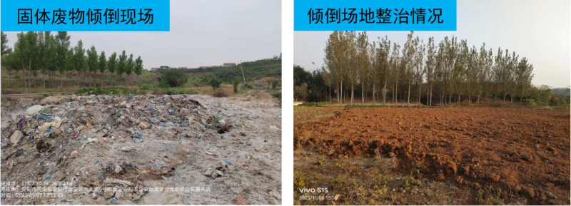 2021年6月15日,生態(tài)環(huán)境部在黃河流域“清廢行動”中篩查到信訪舉報線索,稱河南省安陽市龍安區(qū)彰武街道大白路九號院“河南煤化集團”涉嫌將工業(yè)廢料傾倒在彰武水庫。河南省安陽市生態(tài)環(huán)境局接到生態(tài)環(huán)境部推送的線索后,迅速與彰武街道辦事處聯(lián)合開展調(diào)查。通過走訪群眾、實地勘察等方式,確認彰武水庫以西、S221省道以東約600平方米荒地上傾倒大量生活垃圾、建筑垃圾和工業(yè)固廢,伴有強烈刺激性氣味。