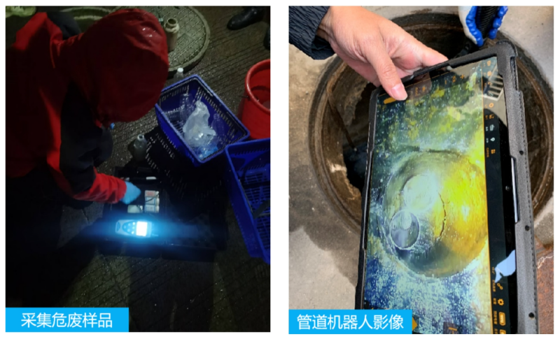 該污水廠服務(wù)區(qū)域?yàn)楣I(yè)園區(qū),內(nèi)部企業(yè)有上百家,行業(yè)性質(zhì)復(fù)雜多樣,管網(wǎng)走向縱橫交錯(cuò)。執(zhí)法人員通過(guò)線上查閱環(huán)評(píng)文件、排污許可證、在線監(jiān)測(cè)等非現(xiàn)場(chǎng)調(diào)查,將目標(biāo)企業(yè)鎖定在四家涉及酸洗的企業(yè);同時(shí)利用管道機(jī)器人,對(duì)4家企業(yè)周邊管網(wǎng)開展巡檢,最終發(fā)現(xiàn)寧波市鎮(zhèn)海新亮麗電泳涂裝有限公司(下稱新亮麗公司)廠區(qū)外1#污水井存在高濃度酸水殘留及排放,在2個(gè)小時(shí)內(nèi)就迅速鎖定了廢水來(lái)源。執(zhí)法人員對(duì)1#污水井管道內(nèi)殘液、新亮麗公司污水站水泵入口廢水、污水排放池內(nèi)殘留廢水進(jìn)行比對(duì),發(fā)現(xiàn)這三處廢水均呈強(qiáng)酸性。
