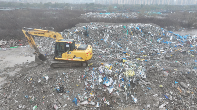 圖1 2024年2月29日,督察組暗查發(fā)現(xiàn),上瑞環(huán)??萍加邢薰敬罅拷ㄖc生活垃圾混堆