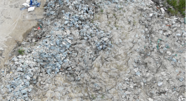 圖4 2024年5月18日,督察組現(xiàn)場督察使用無人機拍攝,建筑垃圾非法傾倒至崇明區(qū)上實東灘