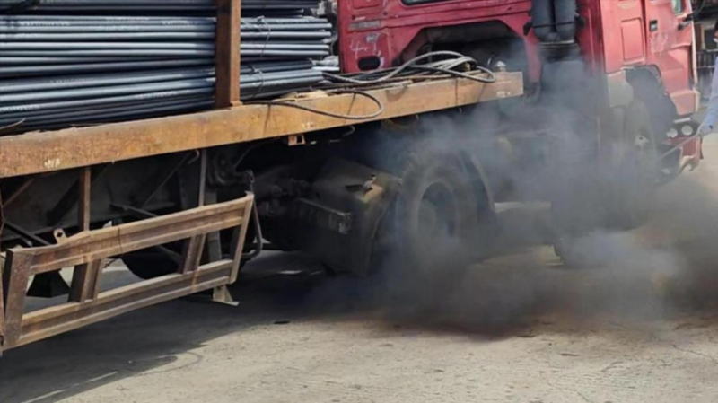 圖1 2024年5月19日,督察組現(xiàn)場督察發(fā)現(xiàn),寶山區(qū)佰隆碼頭使用報廢柴油貨車進(jìn)行內(nèi)部運(yùn)輸,排氣口黑煙滾滾