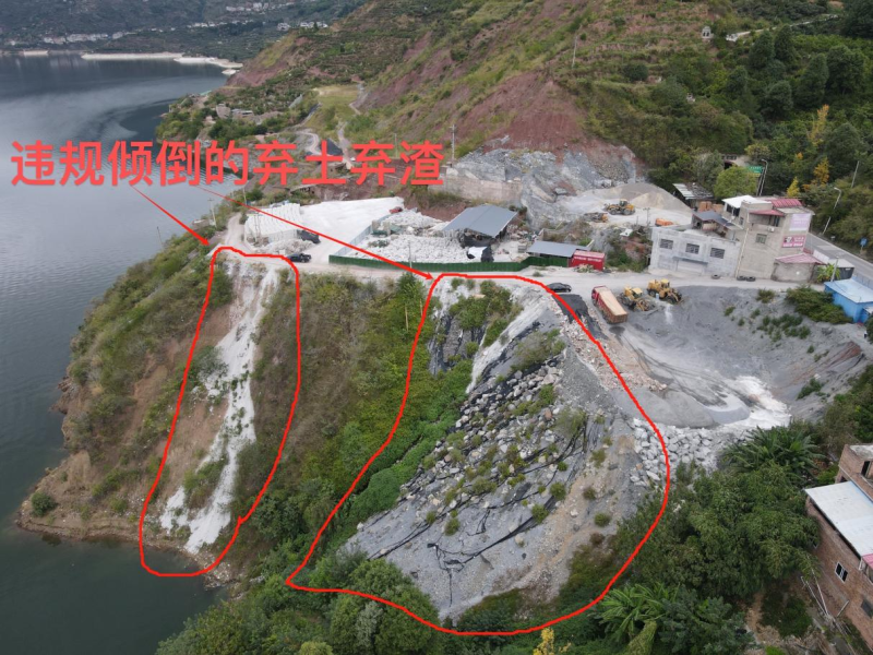 圖1 2024年10月25日,督察組現(xiàn)場督察發(fā)現(xiàn),雅安市漢源縣富泉鎮(zhèn)中海村大渡河自然岸坡被違規(guī)傾倒約1700立方米洞渣、廢漿和建筑垃圾